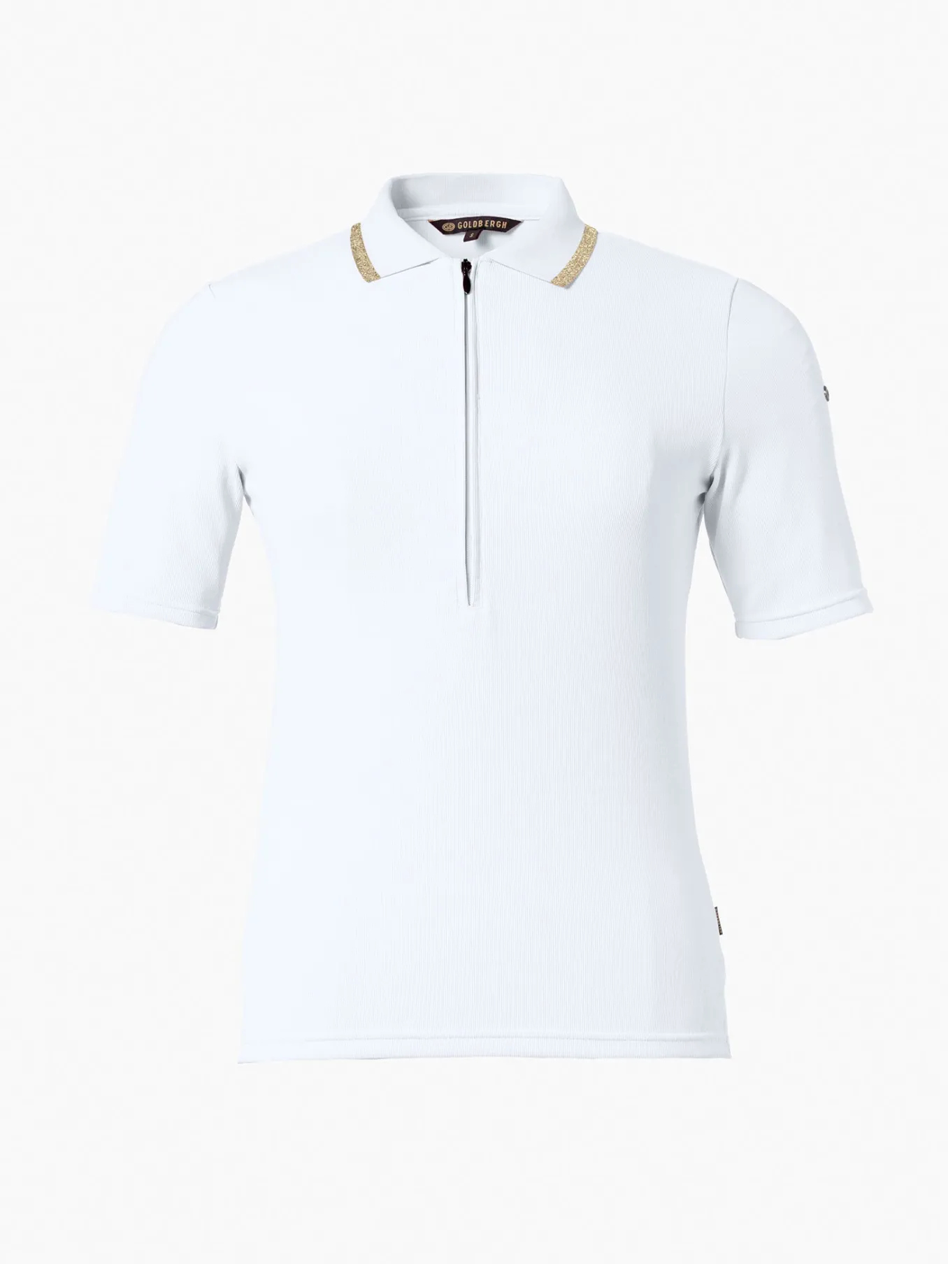 - Rib polo collar with gold lurex edge stripe